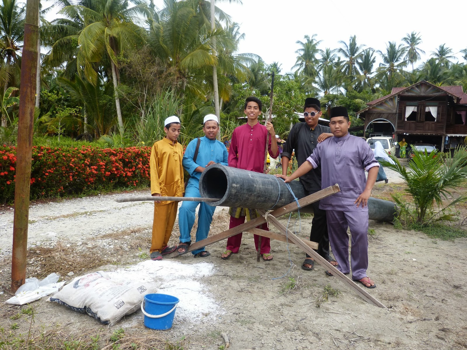 okay ini titi lagi bahaya.. nak pi raya rumah orang.. kereta memang xboleh nak masuk la kan.. dijamin tenggelam masuk parit.. hihi